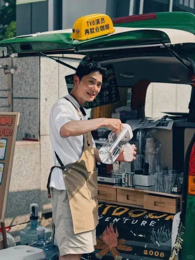 47岁的姚亦澧系着围裙,在改装的车后面熟练地磨咖啡豆、冲泡咖啡,偶尔有路人会愣住:“这不是TVB那个演员吗?”